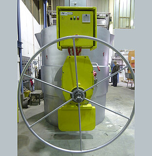 Unsere Getriebebaureihe auf Modulbasis ermöglicht eine schnelle und unkomplizierte Nachrüstung eines pneumatischen Kippantriebes anstelle des Handrades.