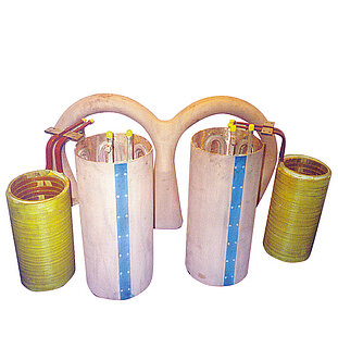 Neue Tiegelofenspulen (Einsatz unter Vakuum oder normaler Atmosphäre) können mit einem Durchmesser von bis zu 2200mm gefertigt werden. Die dabei verwendete MARX Isolationstechnik inkl. des Tränkverfahrens bietet größtmöglichen Schutz für Ihre Spulen.
