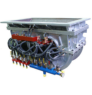 Alu-Temperatur: bis 780°C, Realisierung über 4 Rinneninduktoren in V-Schaltung